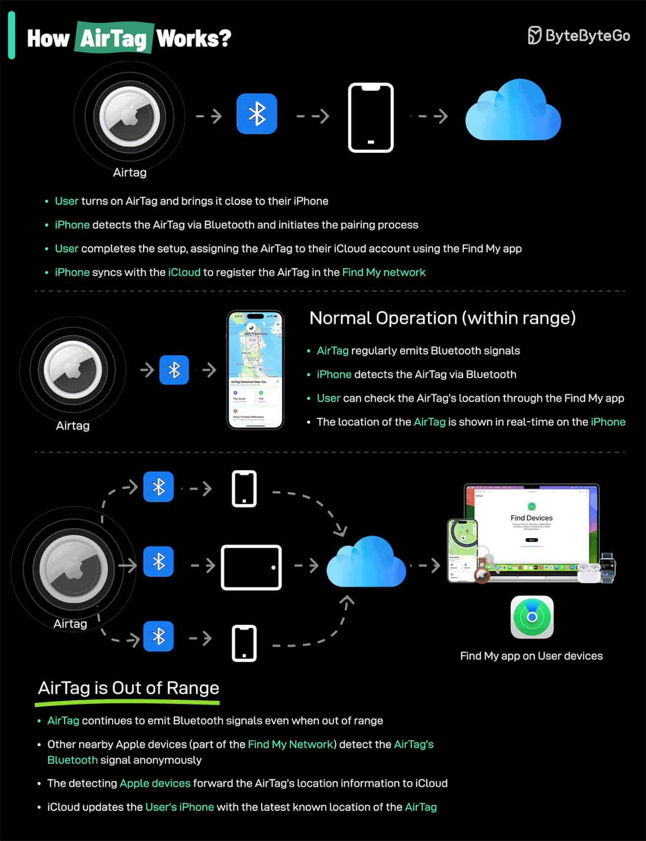 How AirTags Work Credit: ByteByteGo